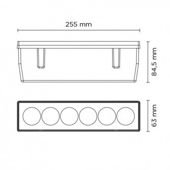 Dış mekan kurulumu için doğrusal zemine gömme çerçevesiz üst ışık, fosfo kromatlı ve polyester toz boyalı döküm bakır içermeyen alüminyum gövde, temperli emniyet camı, kalıplanmış silikon conta. 6 CREE XP-G2 LED'li dahili LED sürücüsü 220-240V 50-60Hz. IP67 derecesi. 10 WATT 220-240V 50-60HZ ELEKTRONİK IP67 1,40 KG BİRİM BRÜT AĞIRLIK · Malzeme: korozyona karşı yüksek dirençli döküm bakır içermeyen alüminyum gövde · Kaplama: fosfokromatlama ön kaplamalı polyester toz kaplama · NR. 6 x 1,5W CREE 'XP-G2' LED · Elektronik transformatör 220/240V 50/60Hz dahildir · Paslanmaz çelik vidalar · Silikon kauçuk conta · Temperli emniyet camı. · Maksimum statik ağırlık dayanımı 5.000 Kg · Darbeye karşı koruma IK10 (20 joule) · PG9 kablo rakoru. · Polipropilen gömme kutusu dahildir. · 1 mt. neopren güç kablosu dahildir