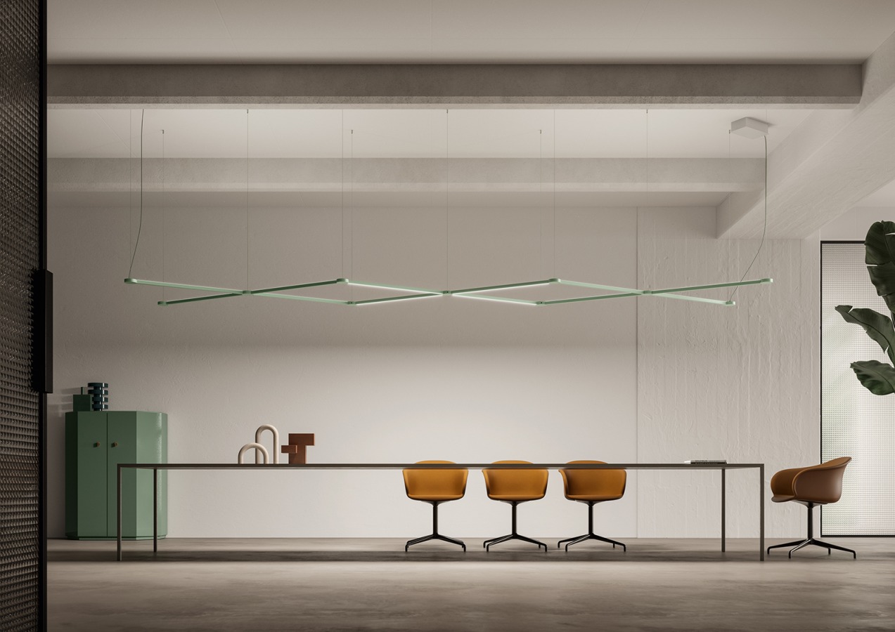 Poses ile Axolight, müşterinin sayısız düz geometrik şekiller (aslında pozlar) yaratmasının yanı sıra düz çizgiler ve bağlantı noktaları kullanarak ışığın iç mekanlarda taşınmasını ve yayılmasını sağlama hedefini belirler.