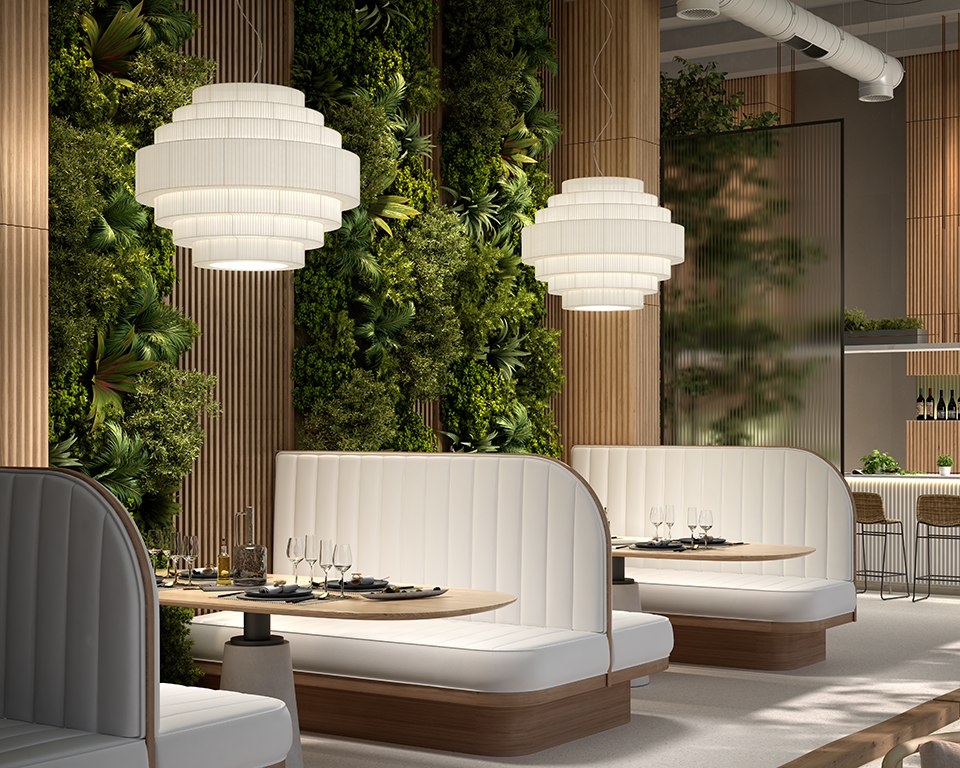 Büyük formatlı lambalar, sıcak ışık, alanı dolduran ve yüksek ışık konforu ile yüksek dekoratif öğeler haline gelen yuvarlak şekilli büyük toplar. Büyük ölçüleri nedeniyle, MOS özellikle sözleşmeli pazar ve iç mekan kullanımı için endikedir. Yapısı, dip ışığını harmanlayan ve yönlendiren opal beyaz cam difüzör ile son bulur. MOS, yarı saydam şerit ile manuel olarak üretilmiştir.