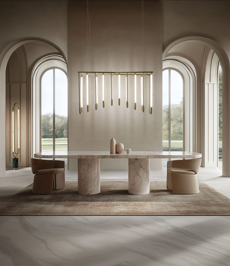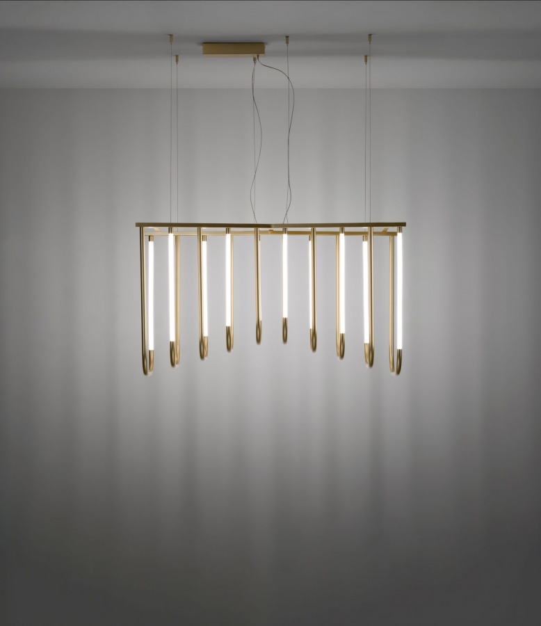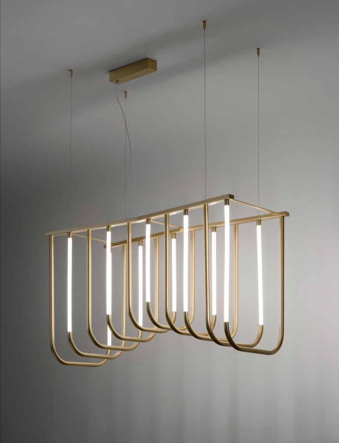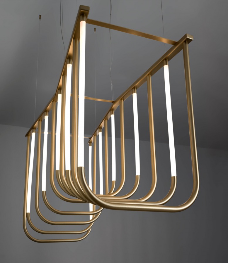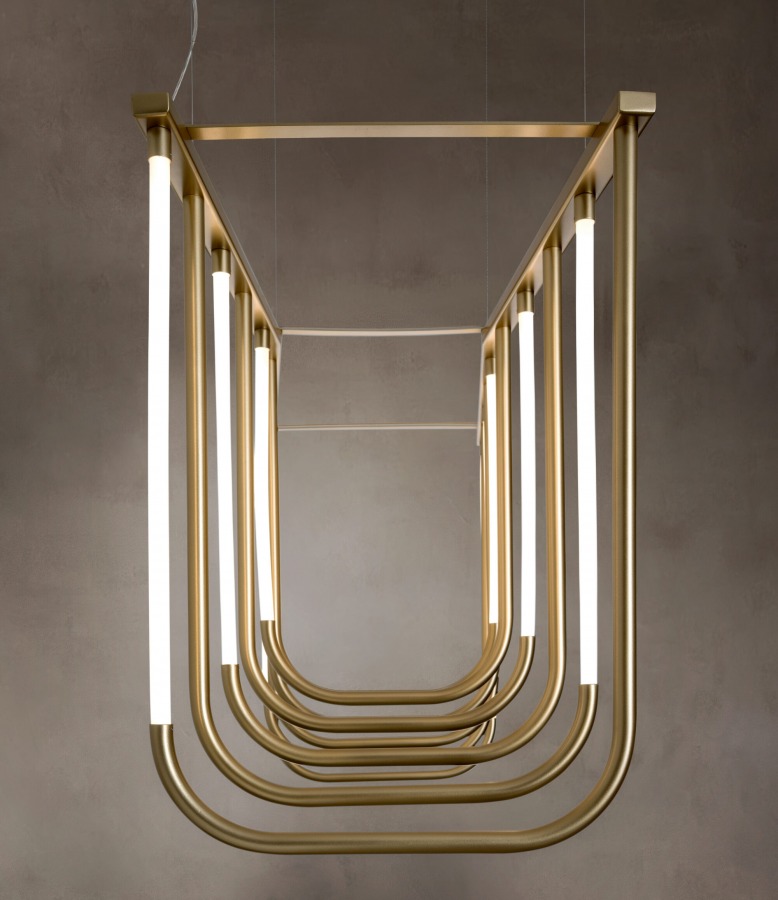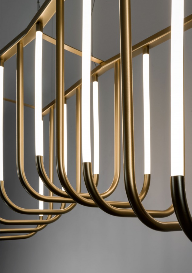 Birbirine paralel ışıklı düzlemlerin ve eş merkezli kemerlerin ardışık dizisi, mekânda kıvrımlı ancak anıtsal bir şekil oluşturuyor. Ritmik aydınlatması ve metalik yüzeylerden yansıyan ışıklarıyla, çeşitli mekanları ve ortamları cesur bir şekilde aydınlatarak onları olağanüstü kılıyor.
