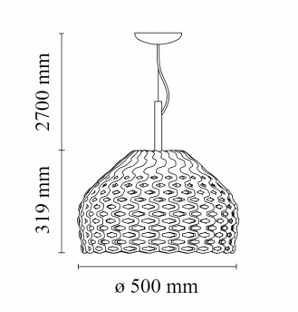 Dağınık ışık asılı lamba. Polikarbonat dış difüzör. Enjeksiyon baskılı opal polikarbonat iç difüzör.Patricia Urquiola, gücün yanı sıra esnekliğin de bir modeli olarak görülen klasik Japon zırhlarının şekillerinden esinlenen bir lamba tasarlıyor.