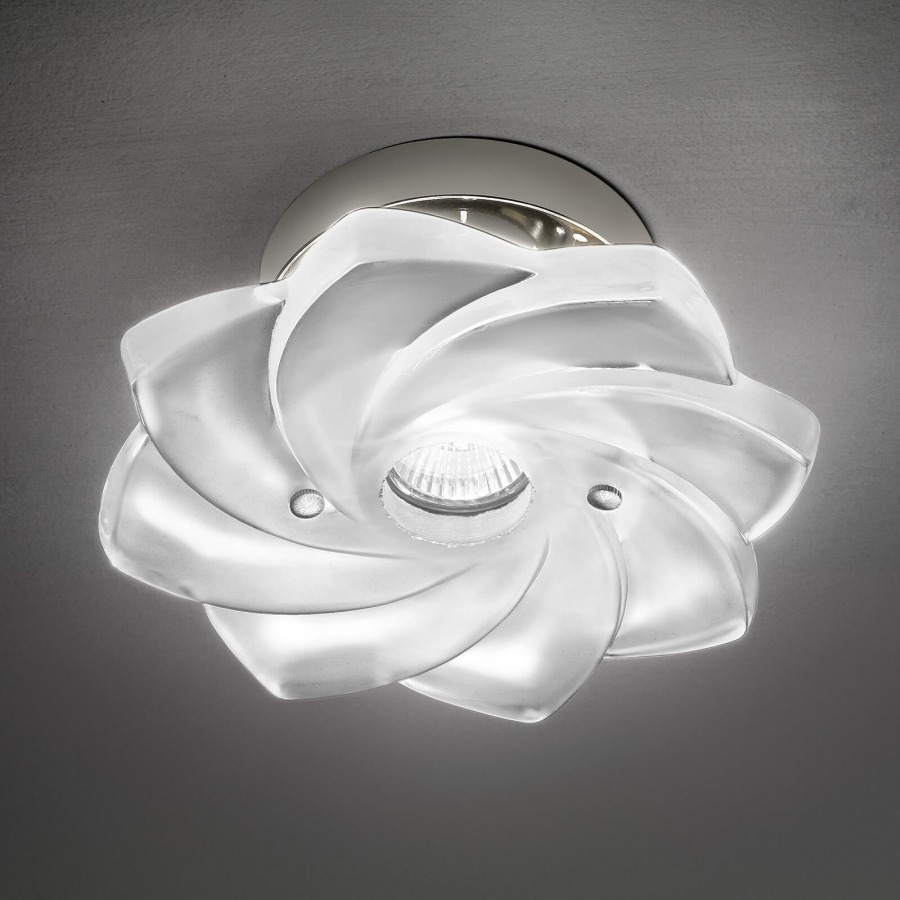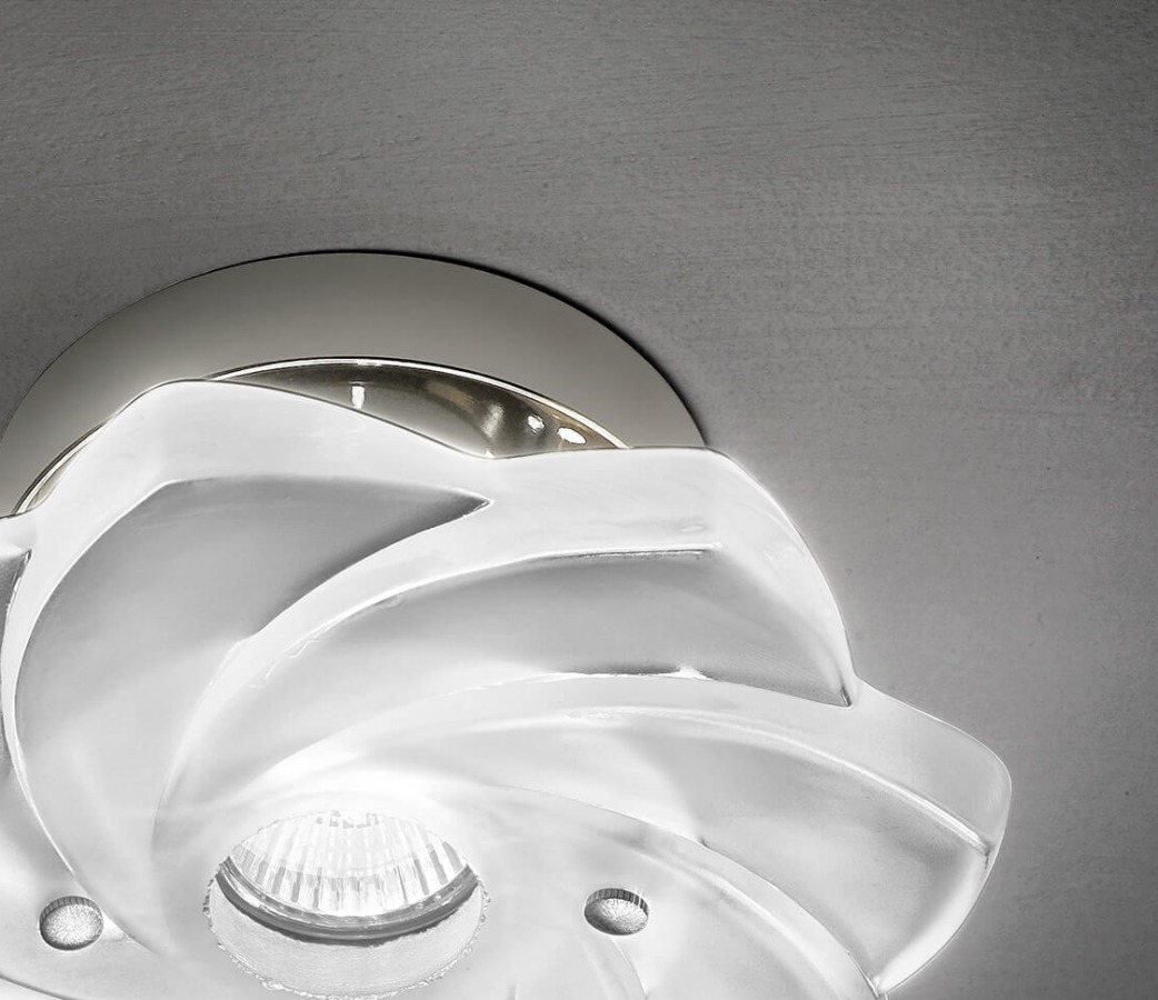 3006 / FA ext 3006 Spotlight in etched glass and metal with chrome finish. Available in chromatic variants. Modern Incanto Catalog.