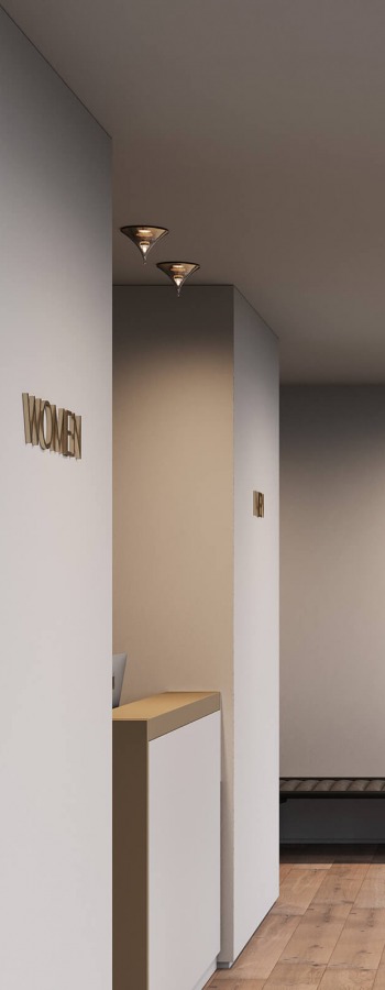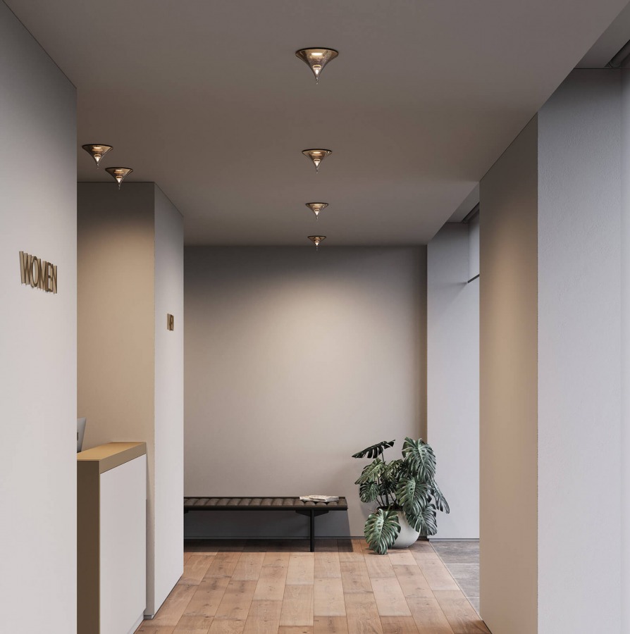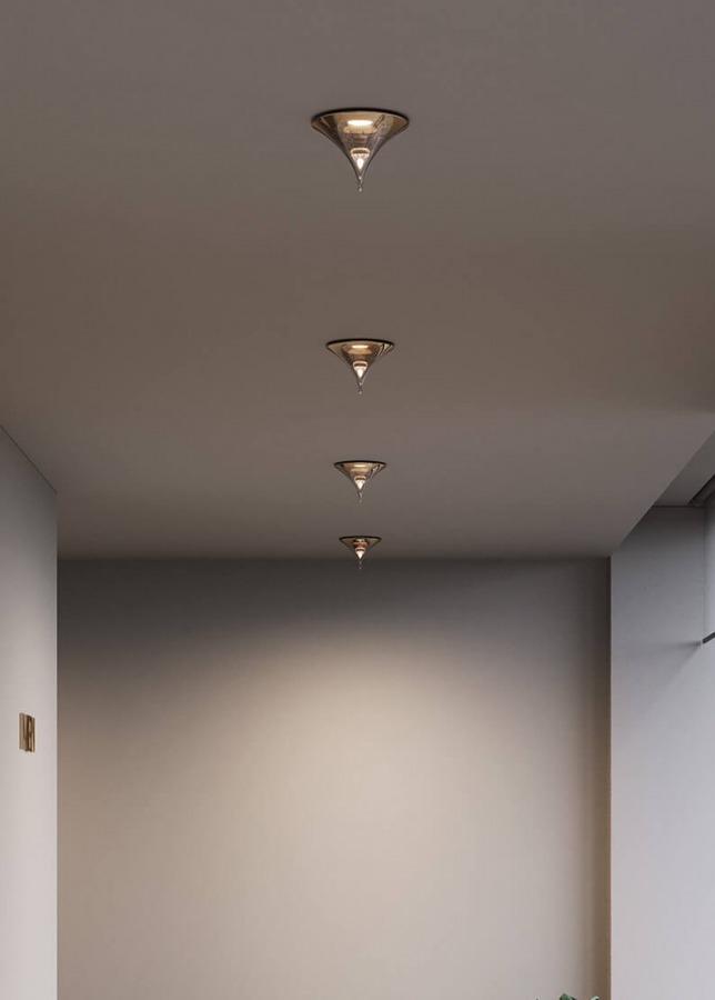 7028 / F IZAR Glass spotlight with metallic shade in gold, titanium or white.